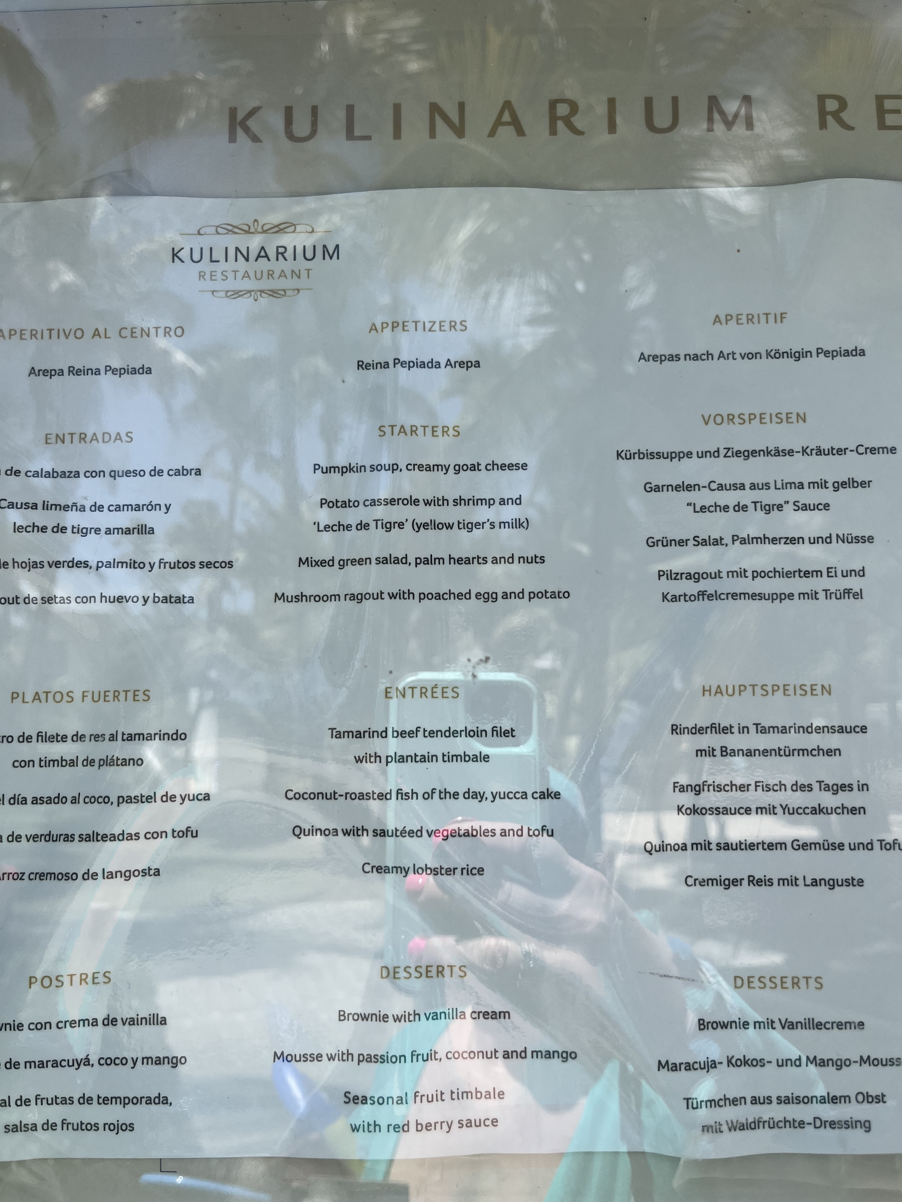 I tried to find menus for the restaurants before we left, but didn’t have any luck. I wanted to know if my picky kids would eat what they had or if I needed to pack copious amounts of snacks and maybe even a jar of peanut butter. For that reason, I am including the menus for some of the Riu Bambu restaurants to this post, in hopes that it will help another mom.