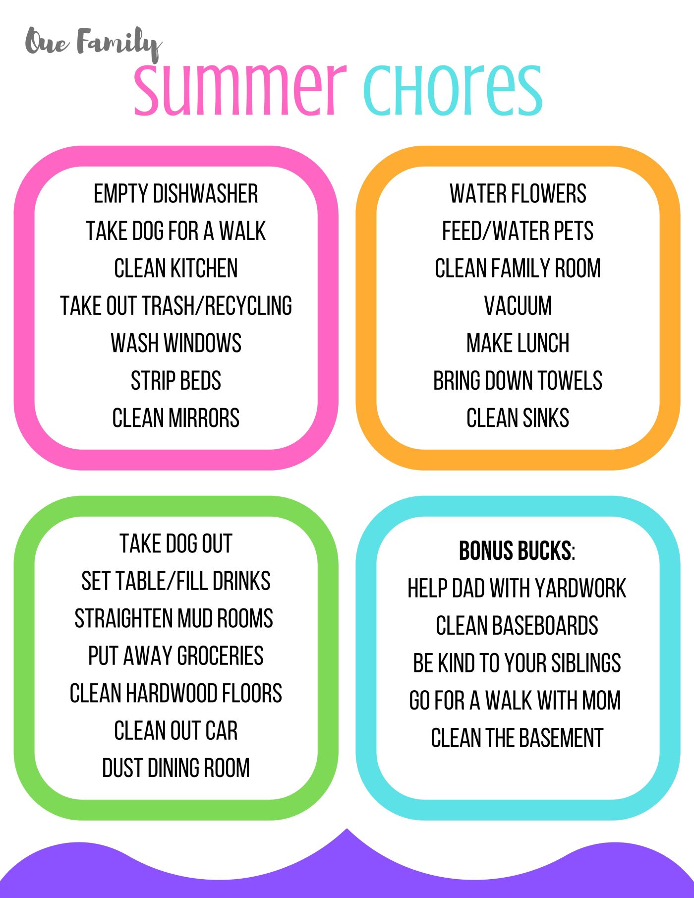 I also added a “Bonus Bucks” section of the chore chart. These are things the boys can do at any time to earn an extra buck. I put some chores on there that go the extra mile. I want to reward them when they are helping out and being kind and respectful. I’d be thrilled if I was giving out dollars every day!