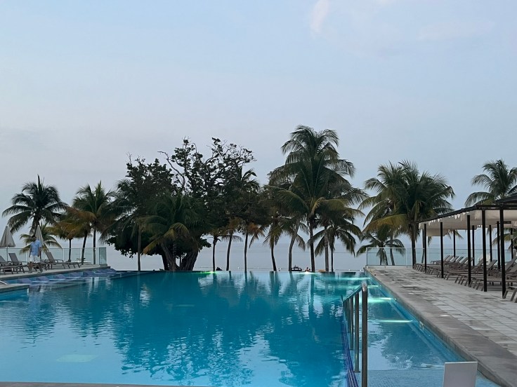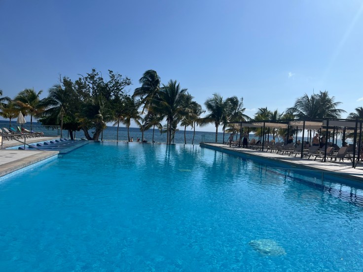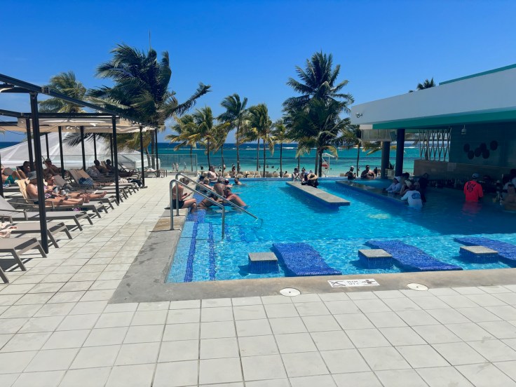 When we were ready for a break from the sand and salt water, we’d head to the pools. The Riu boasts 5 pools onsite. Each pool has a different vibe. The main, central pool, located outside St. Ann’s restaurant, was the busiest and most lively among the pools. They’d host water activities and have music playing; making it a fun, party atmosphere. Next to the main pool was an adult-only swim-up bar with a smaller, calmer pool besides it. On the other side of the resort, there were two additional pools where we spent most of our time. They were calmer than the main pools, but also included an adult pool next to a family pool. This setup worked great for us, because we could hang out at the swim-up bar while keeping an eye on our teenagers in the pool adjacent to us. We not only enjoyed the calmer pool scene, the view from the infinity pool was breathtaking. We enjoyed the ocean breeze while overlooking the beach and ocean. Relaxing in this pool with the gorgeous view is the epitome of a Caribbean vacation.