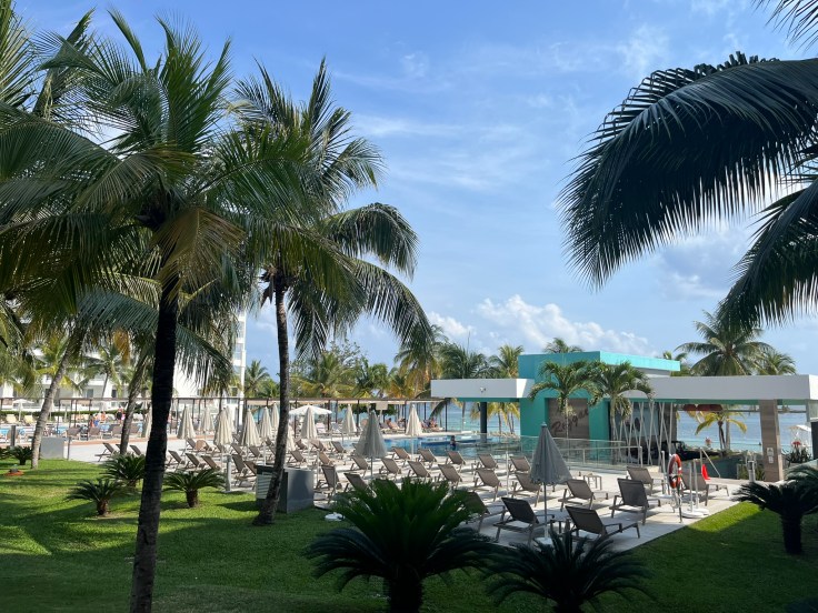 We had 3 rooms, in 2 different sections of the resort. The rooms we had near the infinity pool seamed to be a little nicer than the rooms by the water park/main pool. But the rooms in the new section lacked wifi or cell service. The showers had fabulous water pressure and a body wash dispenser on the wall. As with most Rius we’ve stayed at, the towels could use an upgrade, but other than that, the bathrooms were nice. As for the room, our bed was comfortable and we had a small patio. Our air conditioners worked great, and the TV had plenty of channels for when we were ready to sit down and relax for the night. The refrigerators in the room were stocked with pop, beer and water, and the liquor dispensers on the wall were filled with vodka, gin and rum.