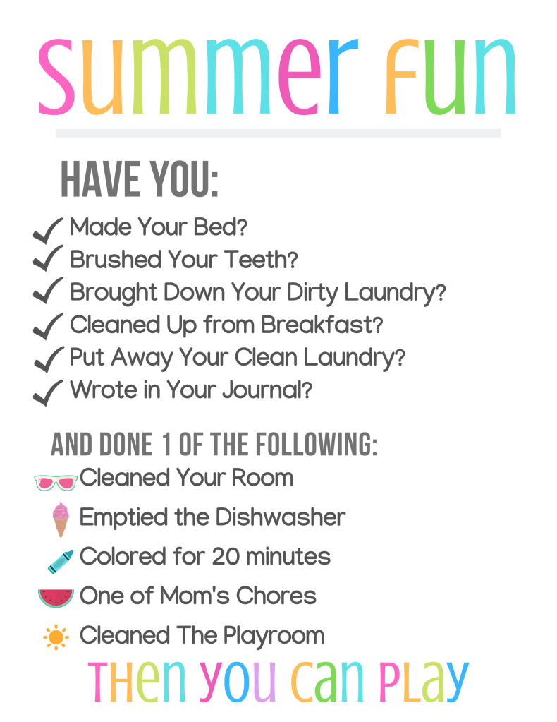 Want to make sure chores are done before your kids start playing their day away? Use this simple summer reminder sheet.