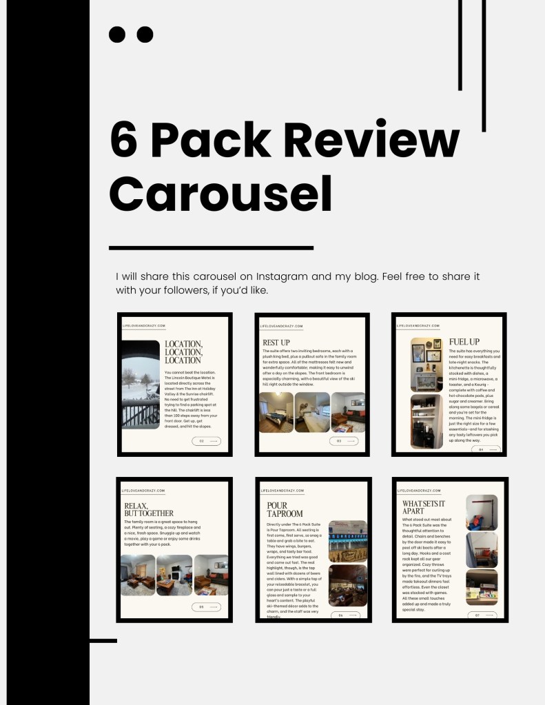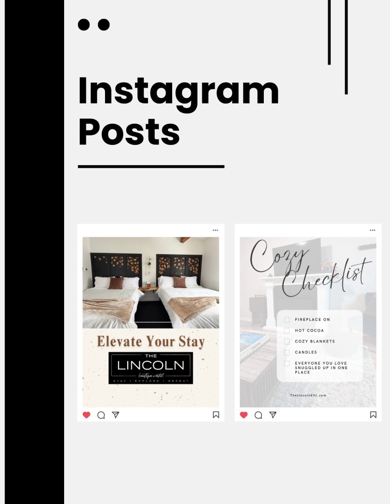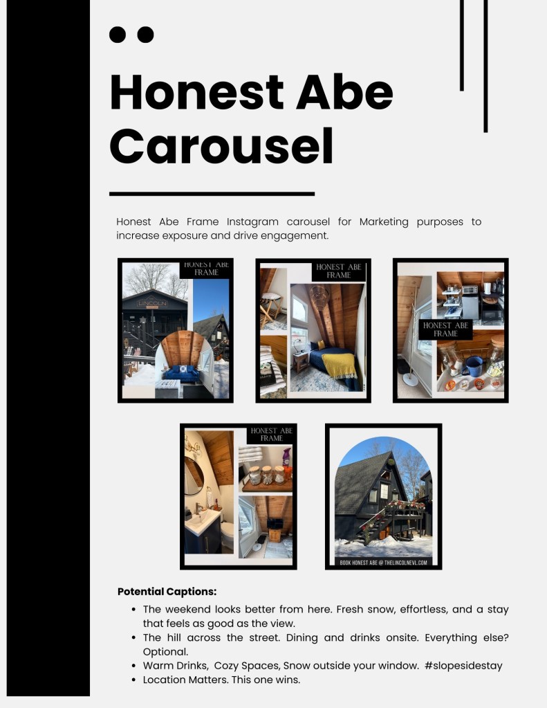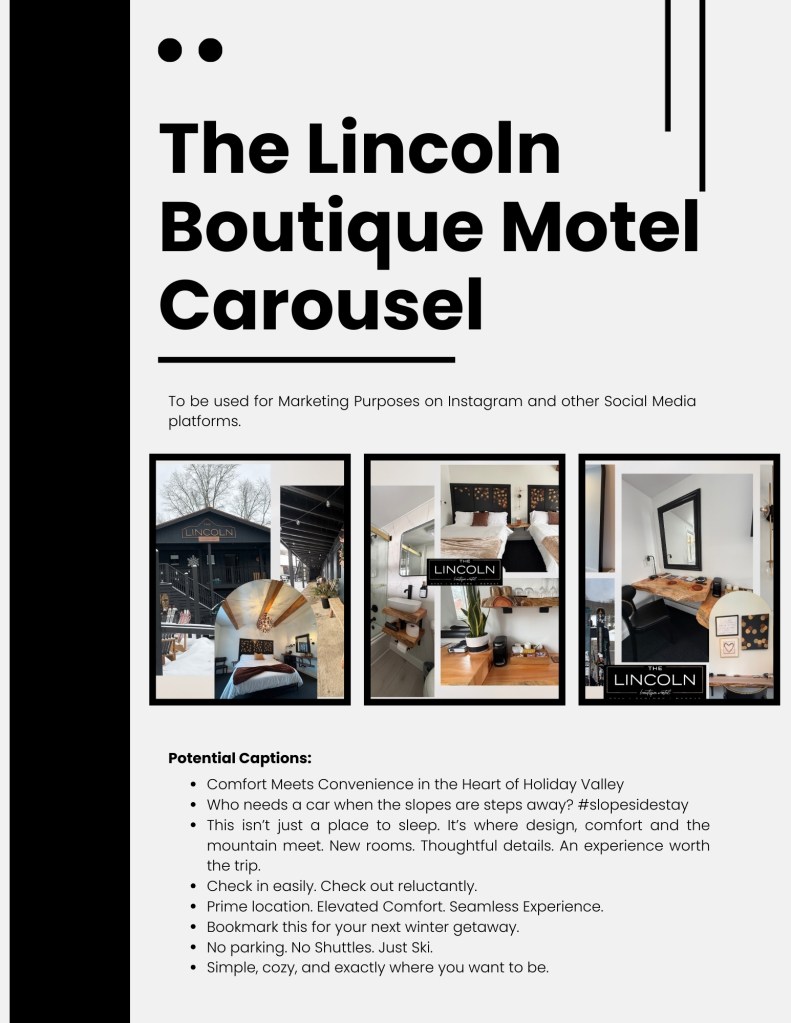 One recent collaboration included a full content package for a boutique ski motel designed to increase bookings and social media visibility.